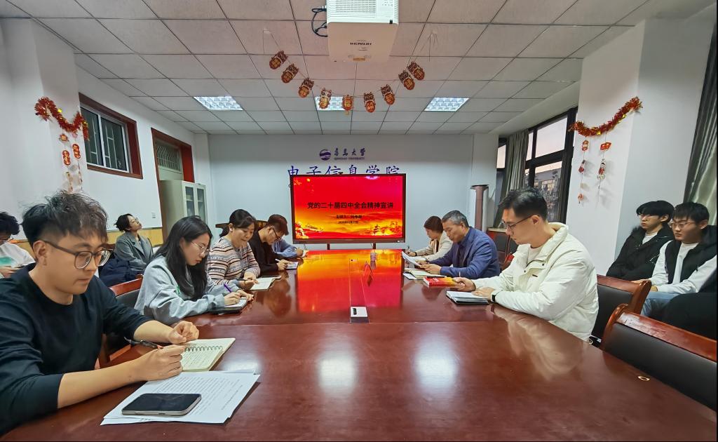 为进一步强化青年学生理论武装,积极引领广大学子学习领会党的二十届四中全会精神,11月27日,我院党委副书记刘孝群走入学生代表中宣讲党的二十届四中全会精神。宣讲会在诚思楼407会议室举行,全体辅导员、学生党员和学生代表参加。